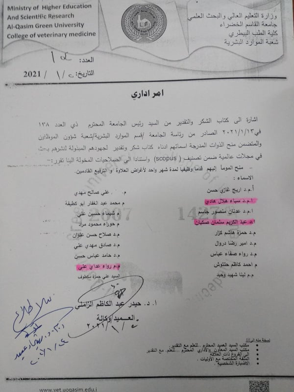 يرجى من طلبة المرحلة الخامسه التواصل مع مشرفي بحوث التخرج كلا حسب عنوان بحثه والاختصاص وبأسرع وقت ممكن
