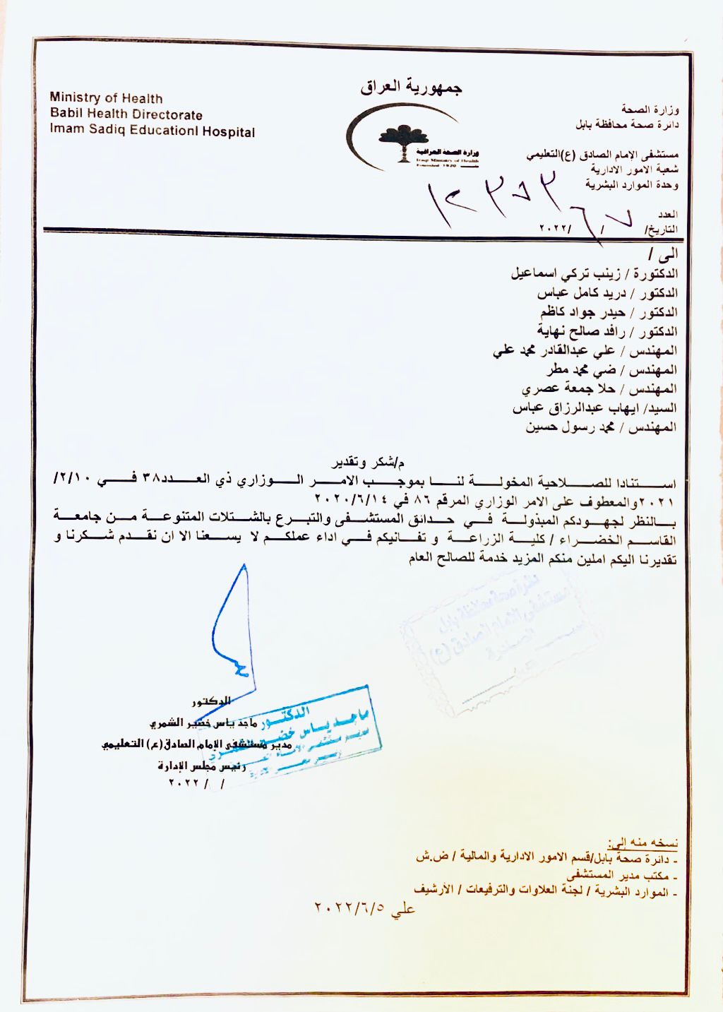 السيد رئيس قسم التلوث البيئي الأستاذ المساعد الدكتور حسين عليوي حسن المحترم بنشر
