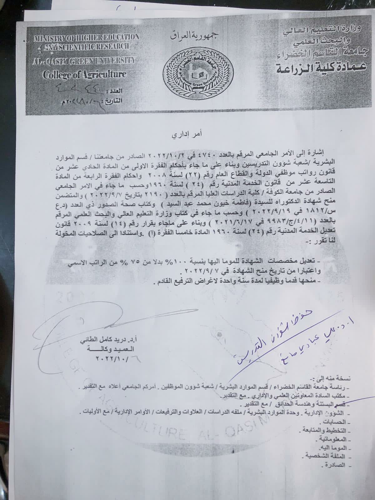 تعلن كلية علوم البيئة – جامعة القاسم الخضراء عن بدء إجراءات تسجيل الطلبة المقبولين ضمن القبول المركزي للعام الدراسي 2025–2026. وتدعو الكلية جميع الطلبة الأعزاء إلى مراجعة شعبة التسجيل في الكلية لإتمام متطلبات التسجيل، مع إحضار المستمسكات الرسمية المطلوبة وفق الضوابط والتعليمات الصادرة عن وزارة التعليم العالي والبحث العلمي. كما تؤكد الكلية على أهمية الالتزام بالمواعيد المحددة للمراجعة لتسهيل إنجاز معاملات التسجيل بدقة وسلاسة، متمنيةً لجميع الطلبة عامًا دراسيًا موفقًا مليئًا بالعطاء والنجاح. ?? المستمسكات المطلوبة للتسجيل أولاً: المستمسكات الثبوتية 1. البطاقة الوطنية للطالب أو هوية الأحوال المدنية مع شهادة الجنسية. 2. البطاقة الوطنية للوالد أو هوية الأحوال المدنية مع شهادة الجنسية. 3. البطاقة الوطنية للوالدة أو هوية الأحوال المدنية مع شهادة الجنسية. 4. بطاقة السكن. 5. البطاقة التموينية. ثانياً: الوثيقة المدرسية 1. الوثيقة المدرسية الأصلية المصدّقة (نسختان ملونتان). 2. في حال عدم توفر الوثيقة عند التسجيل، يُقدَّم تعهد بجلبها لاحقًا. ثالثاً: الفحص الطبي إجراء الفحص الطبي إلزامي، ولا يُستكمل التسجيل بدونه. رابعاً: الصور الشخصية عدد (6) صور شخصية حديثة. خامساً: التثبيت تأييد يثبت إدراج اسم الطالب ضمن قوائم القبول المركزي. سادساً: للمقبولين على قناتي الموازي أو المسائي تقديم كفالة مالية وفق الضوابط والتعليمات النافذة.