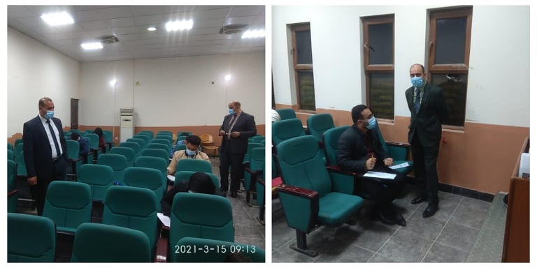 3/15/2021 في ظل اجراءات صحية احترازية مشددة كلية الطب البيطري بجامعة القاسم الخضراء تباشر بأداء الامتحانات الحضورية لطلبة الدراسات العليا