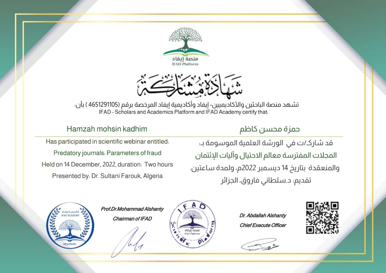حصل التدريسي في مركز الحاسبة الالكترونية في جامعة القاسم الخضراء حيدر عبد الستار ناهي على شهادة الدكتوراه من جامعة بابل عن اطروحته الموسومة NETWORK FUNCTION VIRTUALIZATION TO DEVELOP A BLOCKCHAIN IN CLOUD