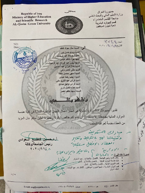 ناقش السيد مهند عبيس عبدالله التدريسي في كلية الطب البيطري بجامعة القاسم الخضراء اطروحة الدكتوراه الموسومة ( الجوانب الحياتية لخمسة انواع من اسماك نهر الديوانية )