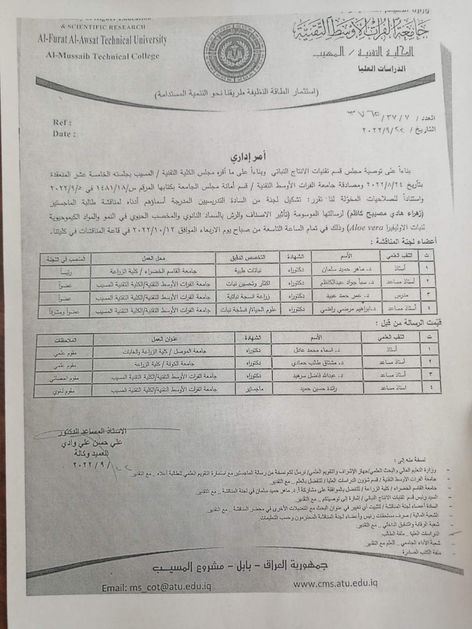 وتأتي هذه التجربة ضمن حرص قسم البيئة على تنمية مهارات الطلبة في التحليل المختبري والتقويم البيئي، وتهيئتهم للتعامل مع مشكلات جودة المياه في البيئة المحلية بطريقة علمية ومهنية .