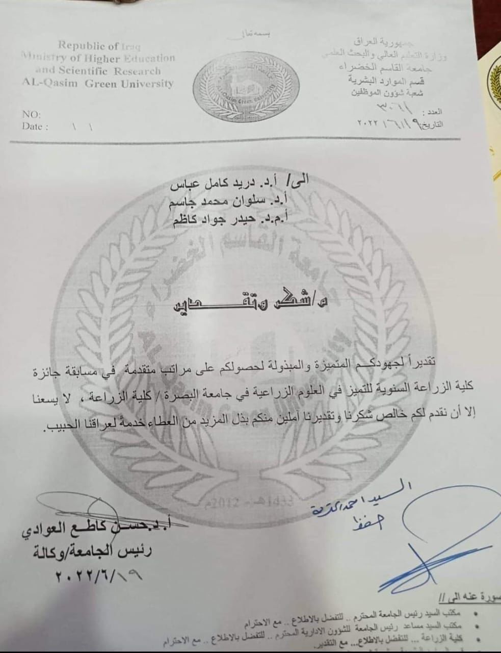 الدوله وحضور الاستاذ الدكتور جاسم محمد صالح السعدي عميد الكلية وبالتعاون مع