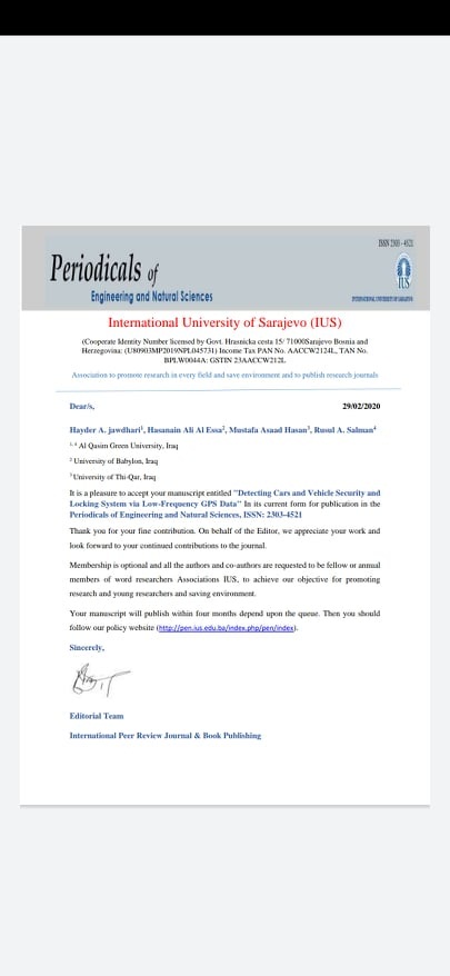 جامعة بابل وجامعة ليفربول جون موريس ببحثه الموسوم ( اختبار ازالة التلوث العضوي